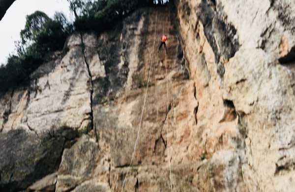 本次拓展訓練是以體驗式培訓”為主體,從鶴鳴山山腳到山頂設立任務節點,全體職工隨機分成3個小組單位,分別為“花生兄弟”、“戰狼隊”、“攀峰隊”。在培訓教練的指導下,開展團隊協作和個人比拼。項目包括徒步登山、撲克牌策略游戲、爭分奪秒、野炊、搭建帳篷、懸崖速降、挑戰人墻。每個項目都具有一定的難度,想要順利通過,則需要跨越自己的“心理極限”,突破自我,并與自己的團隊相互配合,相互支持,集體協作,同時經教練老師有針對性的點評與啟發,達到挑戰自我、熔煉團隊、提高溝通力、協作力的培訓目的。