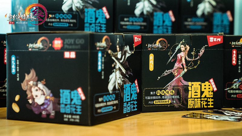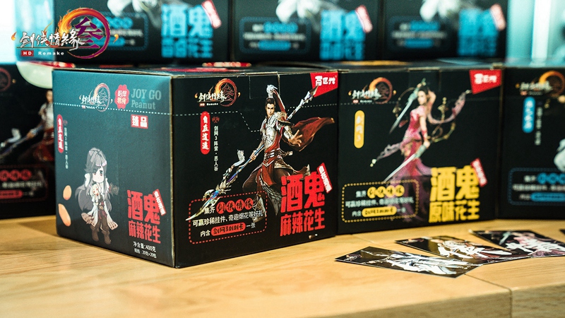 百世興作為花生制品行業品牌,憑借著其 20 年的品牌經驗,將酒鬼花生的原有的武俠氣息與新武俠扛鼎之作劍網 3 的陣營元素巧妙結合,設計出了