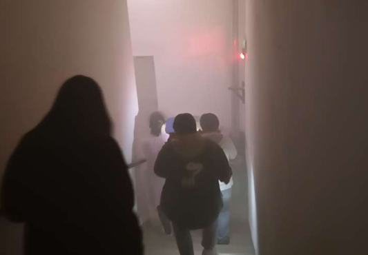 1506分,警報響了,但又不是很響!行政人員出去看了一眼,還不確定,走到安全通道一看,濃煙滾滾,演習開始了!