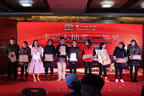 下午6點,百世興食品年會正式開始,百世興食品副總劉杉作新年致辭,回顧過往所取得的成績,展望未來美好前景,對百世興食品全體同仁表達了2019年的新春祝愿,同仁們激情澎湃,滿懷憧憬。百世興食品在2019年交出了一份滿意的答卷,離不開每一位同仁的辛勤耕耘,致辭結束后,公司特別為在百世興食品工作了十年以上的老員工頒發(fā)榮譽證書,以作紀念,百世興的發(fā)展,離不開他們的支持。