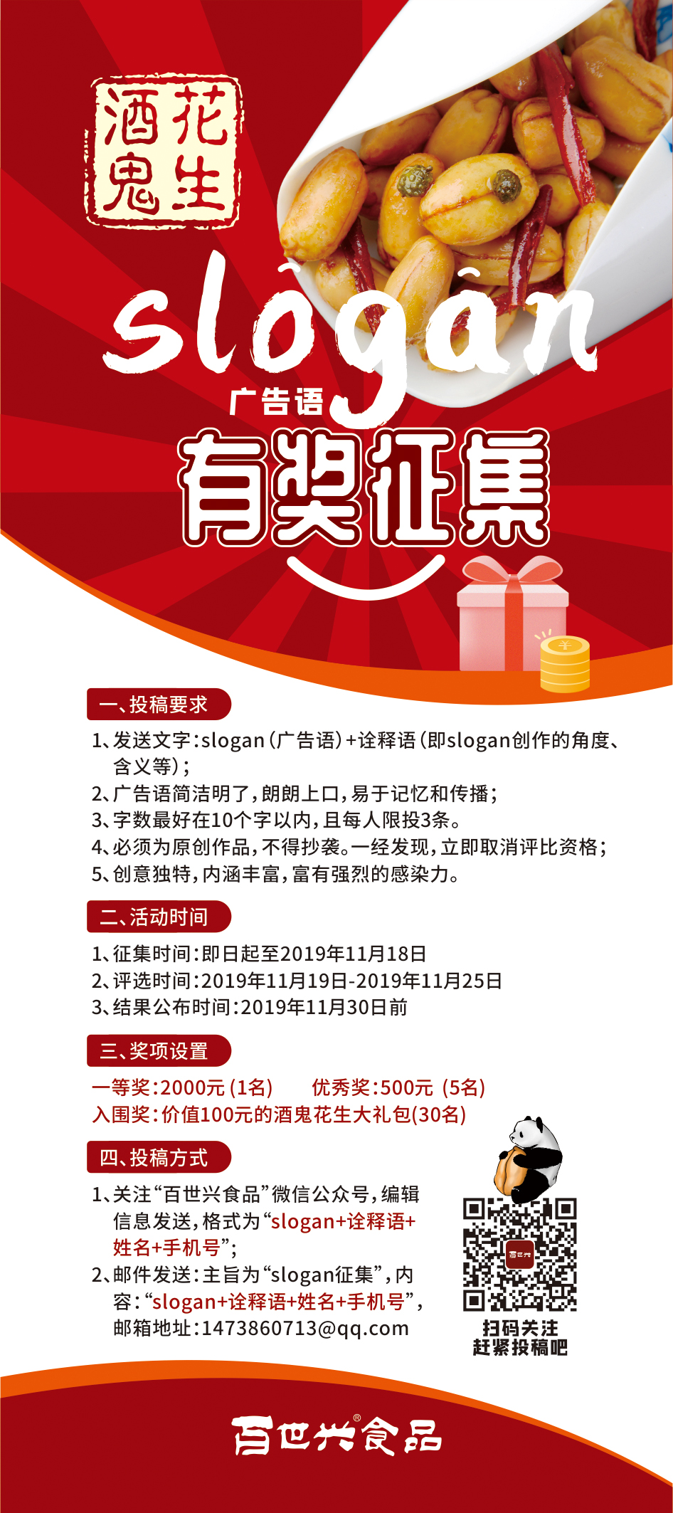 酒鬼花生廣告語征集開始啦~現面向全社會征集酒鬼花生品牌廣告語,最高獎金2000元,還有豐厚大禮包等你來拿~