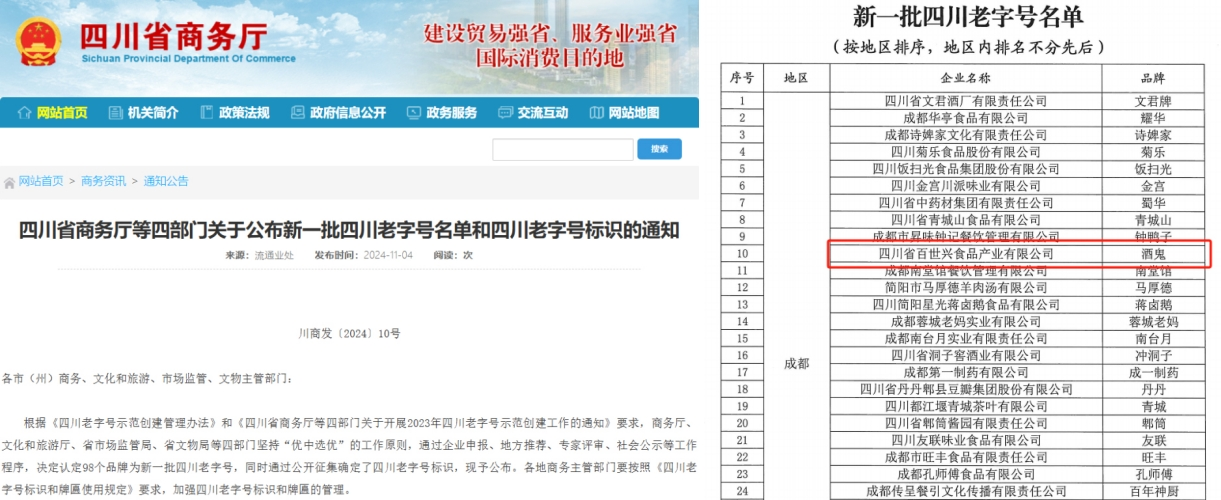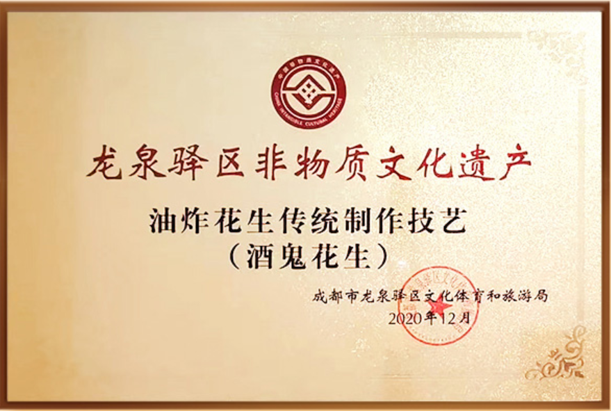 2024年,四川省商務廳、文化和旅游廳、市場監(jiān)管局、文物局聯(lián)合開展的年度"四川老字號"評選中,川省百世興食品產(chǎn)業(yè)有限公司及其品牌"酒鬼"花生登榜這標志著傳承四代的"酒鬼"花生以獨特的歷史文化和非遺傳承技藝正式獲得官方認證的歷史文化品牌殊榮。