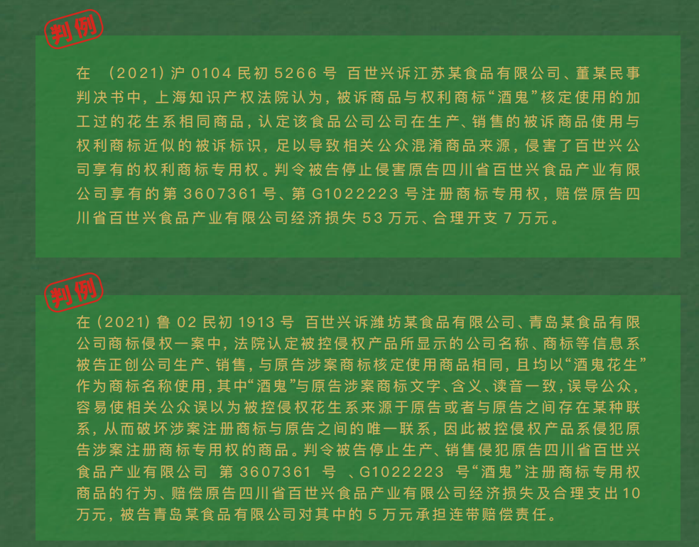 然而,隨著品牌影響力的擴大,市場上涌現(xiàn)出大量仿冒品,仿佛只要是“油炸花生”,就能叫作“酒鬼花生。作為酒鬼花生品類開創(chuàng)者與唯一商標持有者,百世興近年來開始發(fā)起“正本清源”行動,主張以法律手段捍衛(wèi)消費者權益,同時向社會展示“一顆正宗酒鬼花生”的誕生密碼---只此一家,無法仿冒